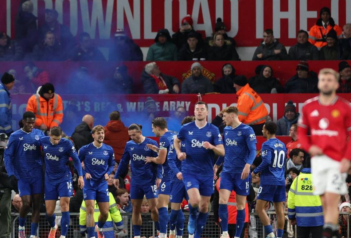 比赛仅开场13分钟,场上就出现转折——埃弗顿中场伊德里萨·盖伊因与队友发生冲突被红牌罚下,这使得曼联获得了宝贵的10打11人数优势。一时之间,外界普遍预期曼联将借此轻松取胜。殊不知,风云突变,反倒是曼联在人数占优的情况下率先失球,由埃弗顿的霍尔完成精彩兜射破门。面对落后的局面,曼联持续加大进攻力度,多次尝试射门,包括多古、迪亚洛和布鲁诺·费尔南德斯的多次打门,但均未能攻破对方球门。半场结束时,比分依旧是0-1。